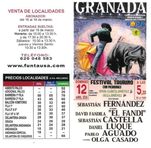 El próximo 12 de abril a las 17:30 horas tenemos una cita muy especial en la Plaza de Toros de Granada. Celebramos el Festival Taurino a beneficio de Down Granada. Este año con la novedad de que los beneficios serán a compartir con la Fundación UAPO. Nuestro Festival es un evento solidario que cada año demuestra que, cuando caminamos juntos, llegamos mucho más lejos.