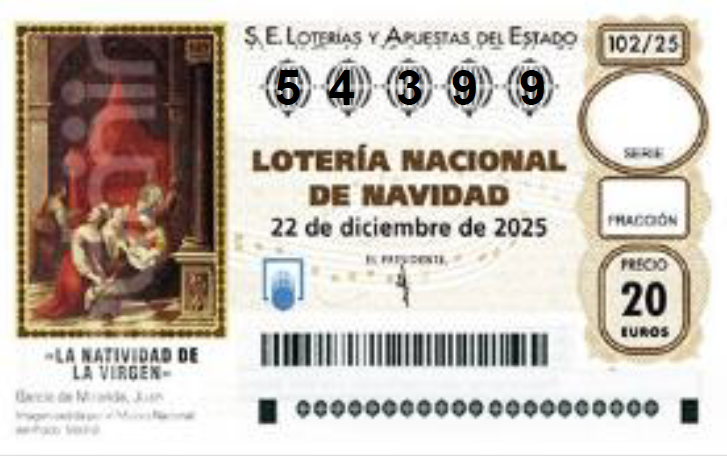 Como cada año, el COAATGR tendrá a disposición de los colegiados que lo deseen participaciones de la Lotería de Navidad 2025, este año con el número 54.399. Tendremos participaciones de 5 y 10 € a la venta en el Colegio de lunes a viernes de 9 a 14 horas y el pago se realizará con tarjeta.